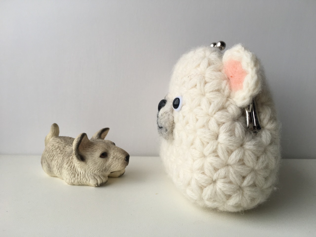 リフ編みで編んだシロクマちゃんがま口ポーチ