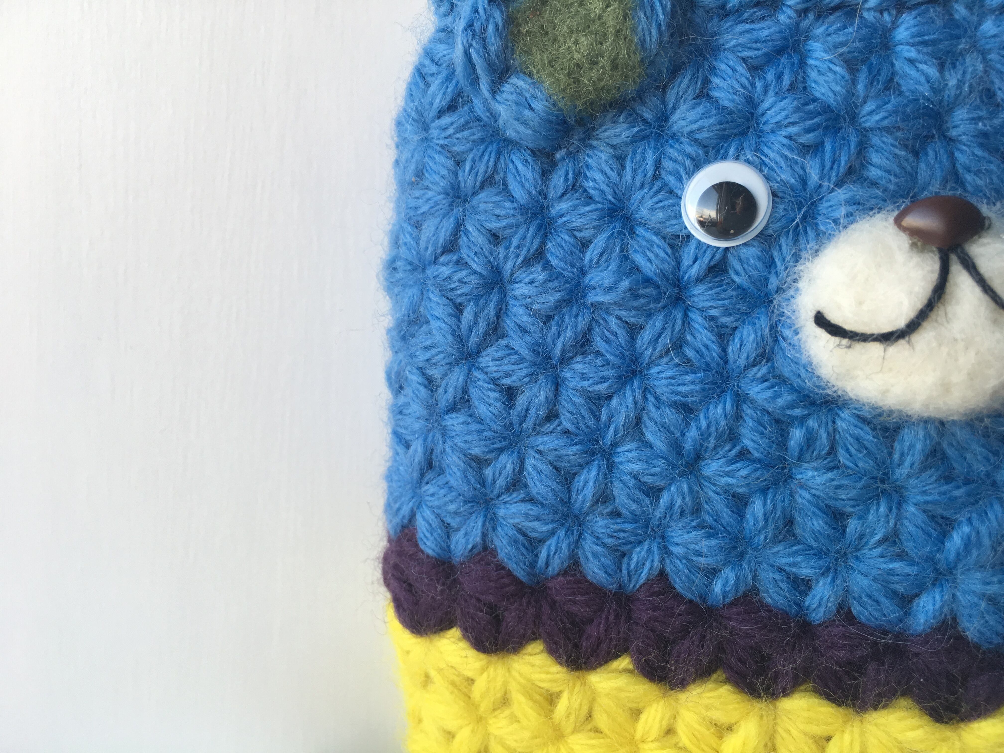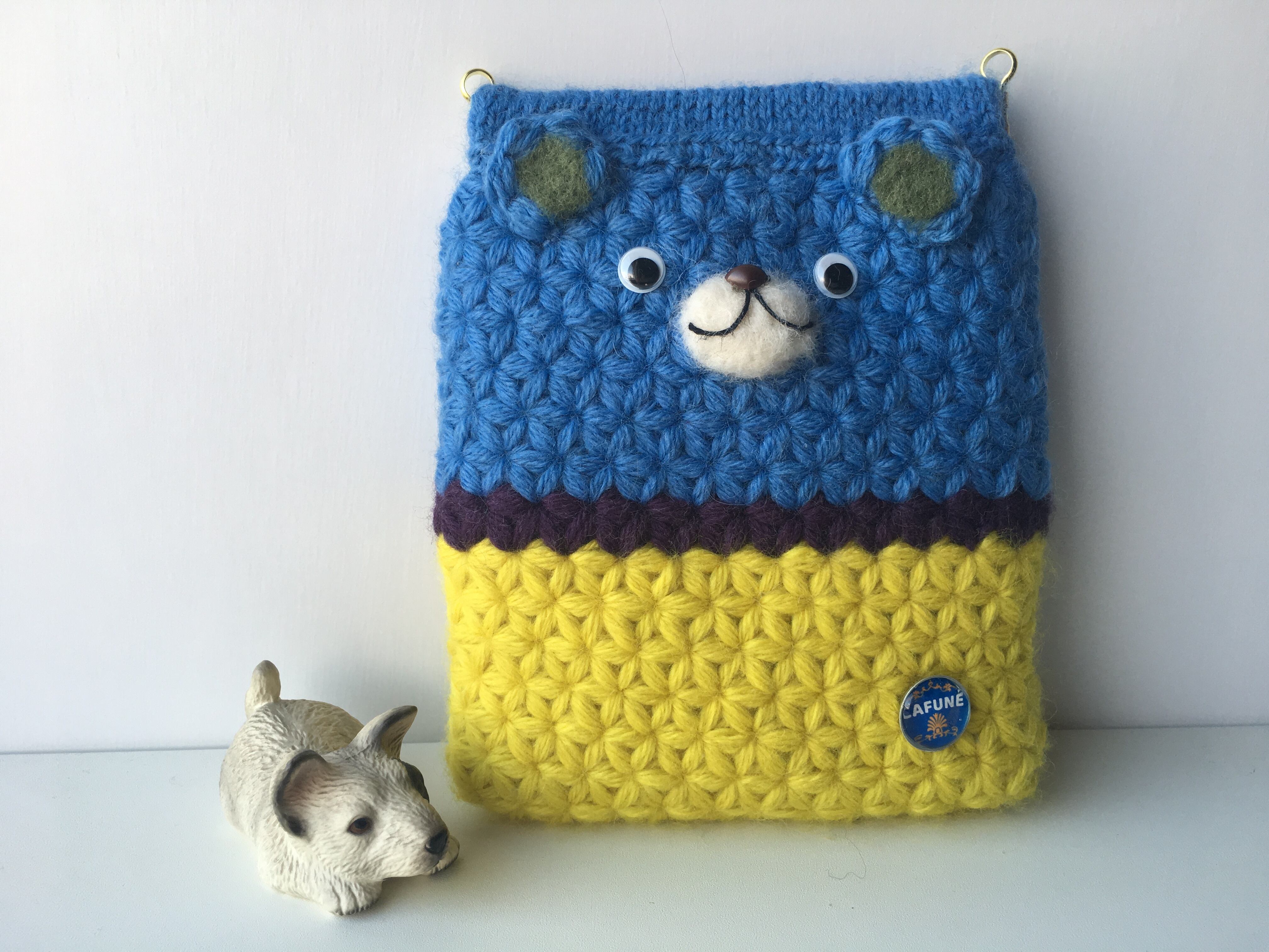リフ編みで編んだくまちゃんバネポーチ