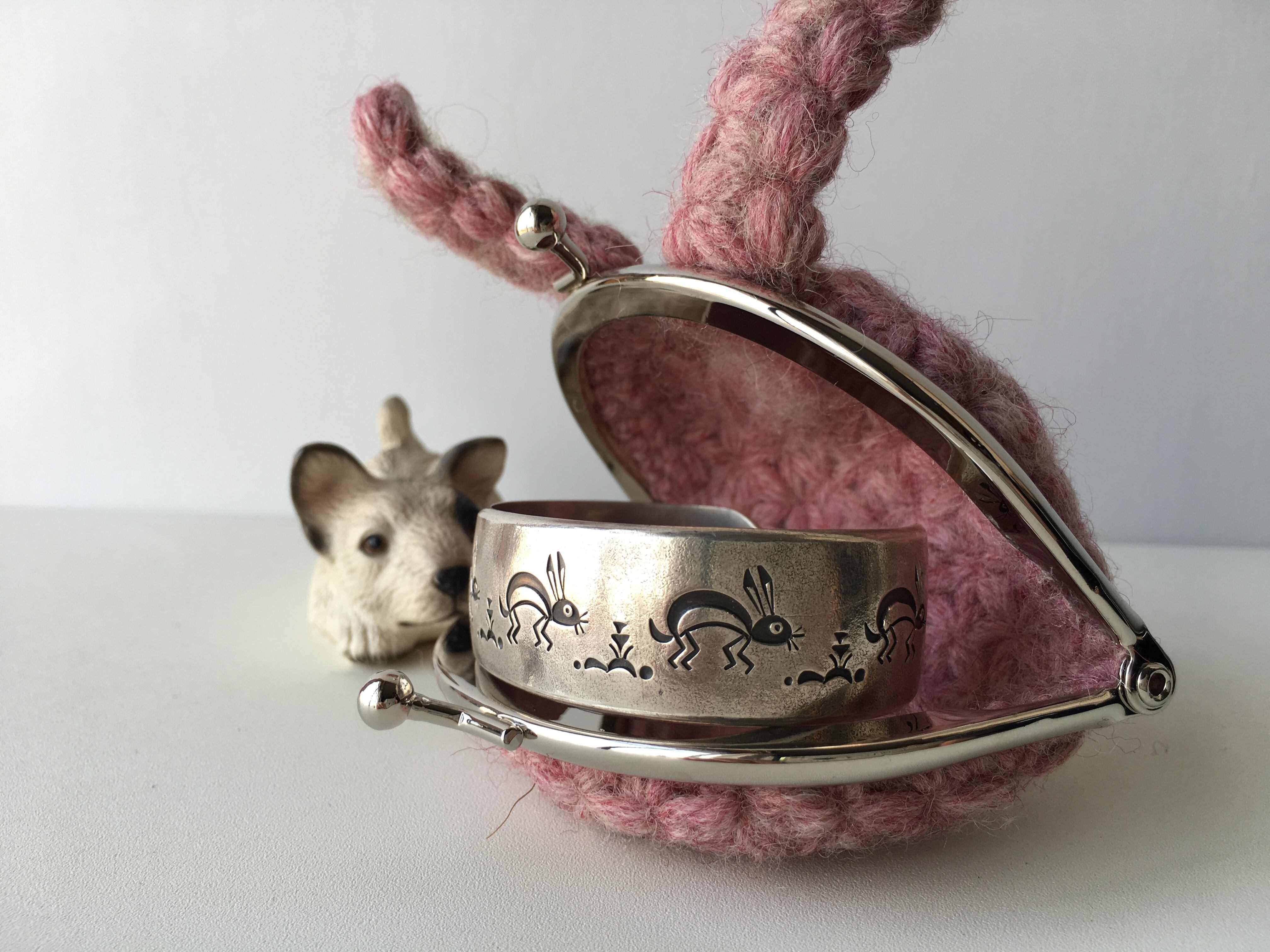 リフ編みで編んだうさぎちゃんがま口コインケース