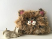 リフ編みで編んだモフモフ猫ちゃんがま口ポーチ