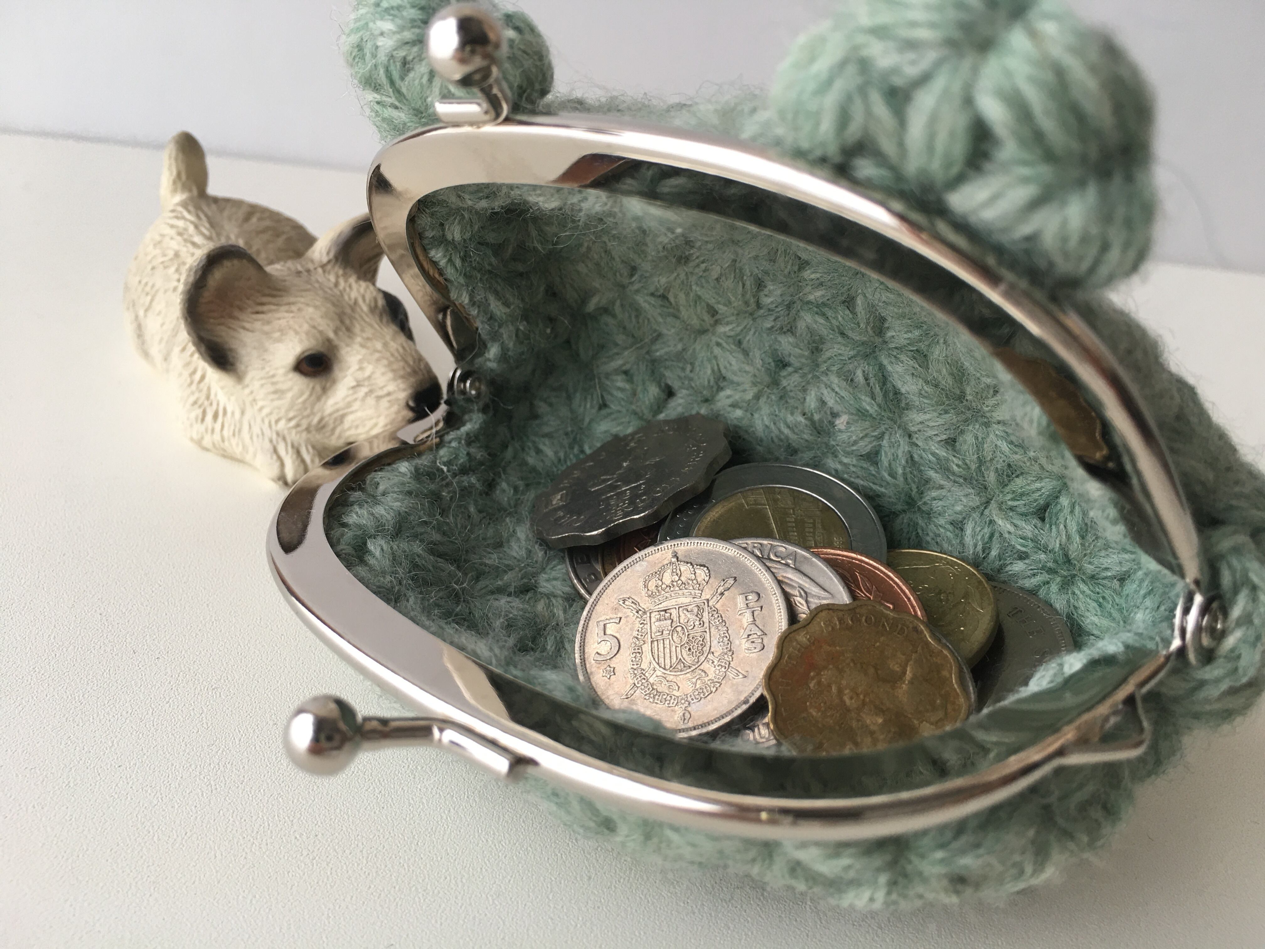 =リフ編みで編んだカエルちゃん がま口コインケース=