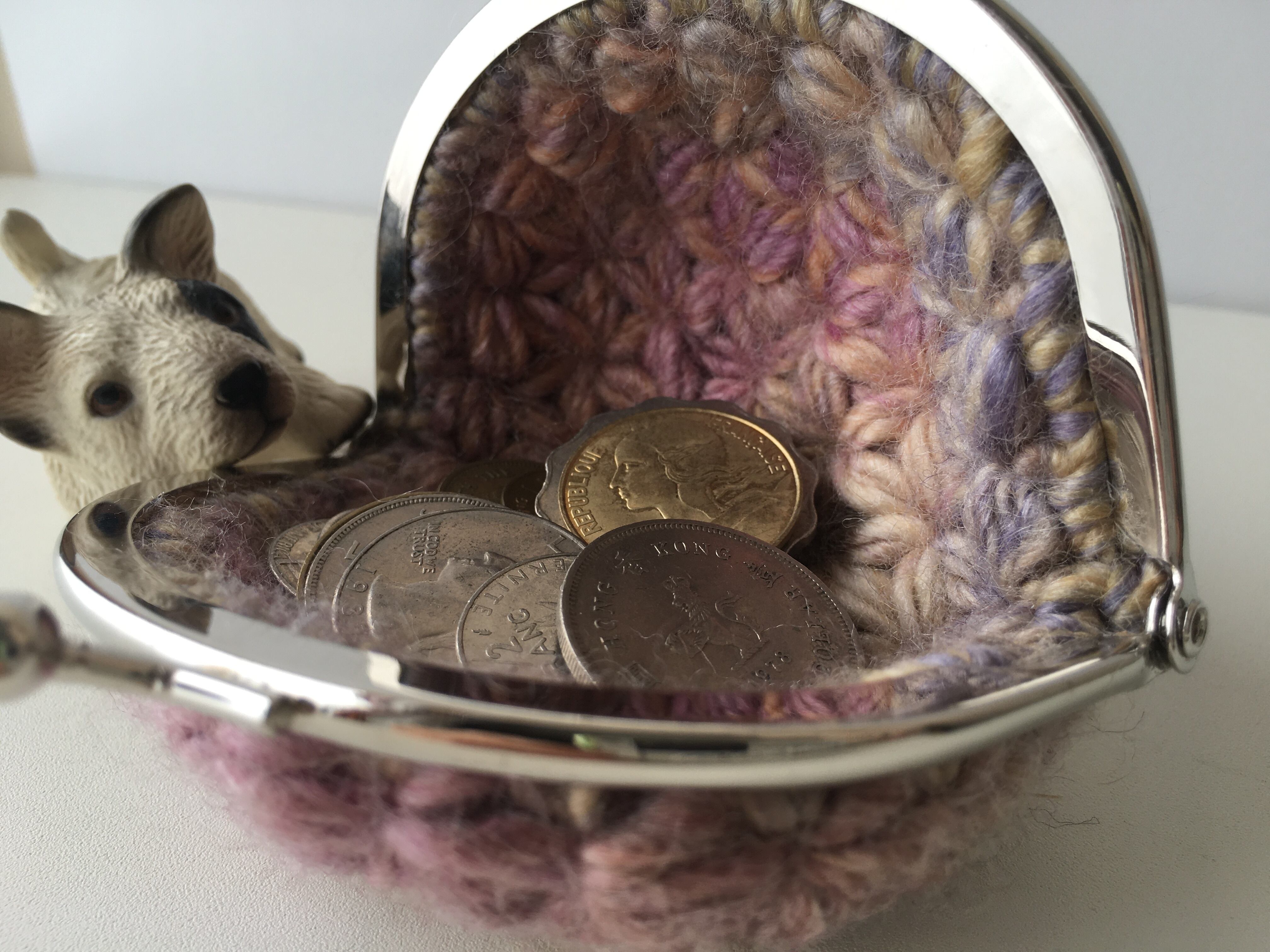 =リフ編みで編んだシンプルな がま口コインケース=