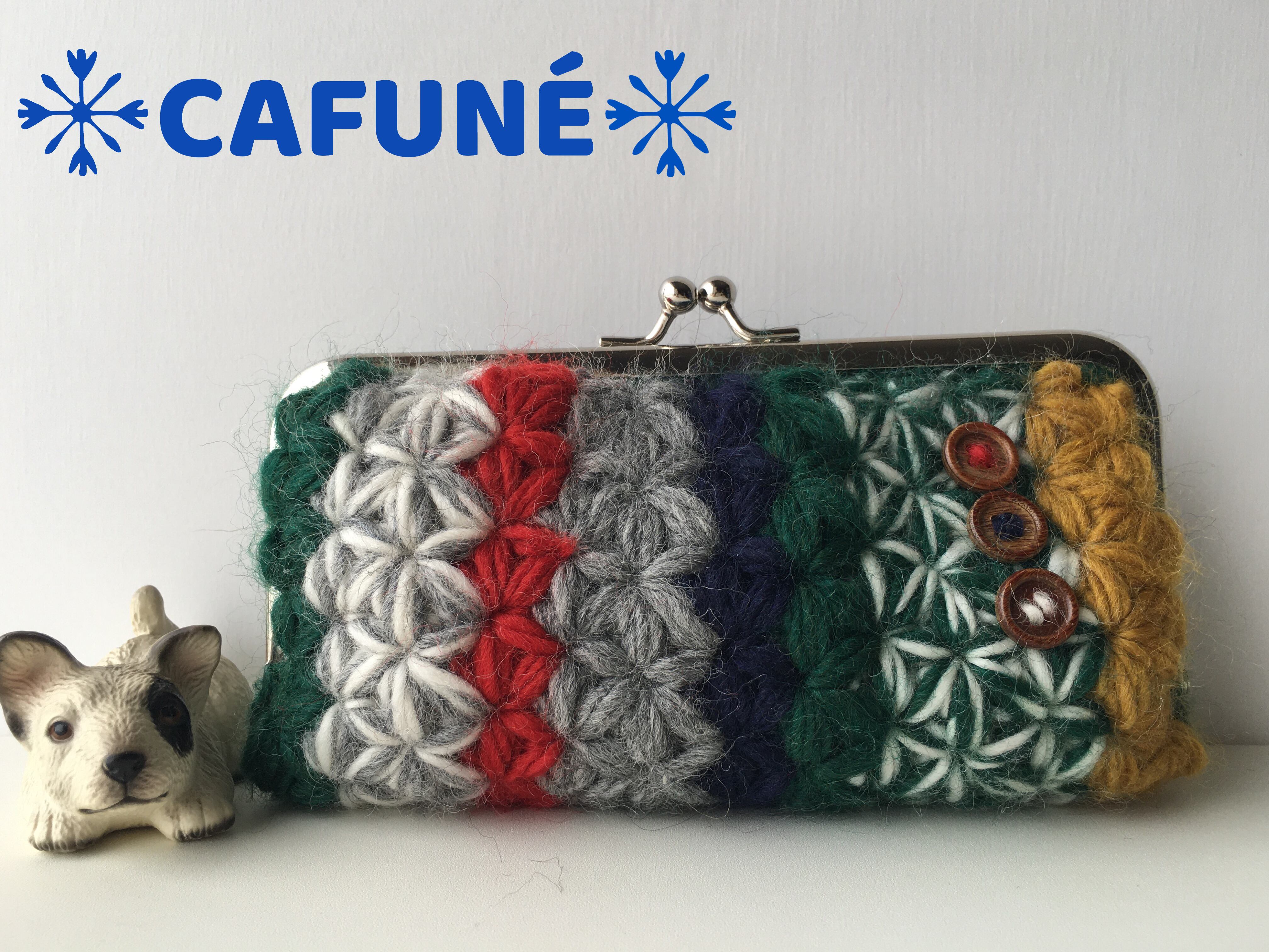=リフ編みで編んだモダンレトロ風がま口メガネケース=