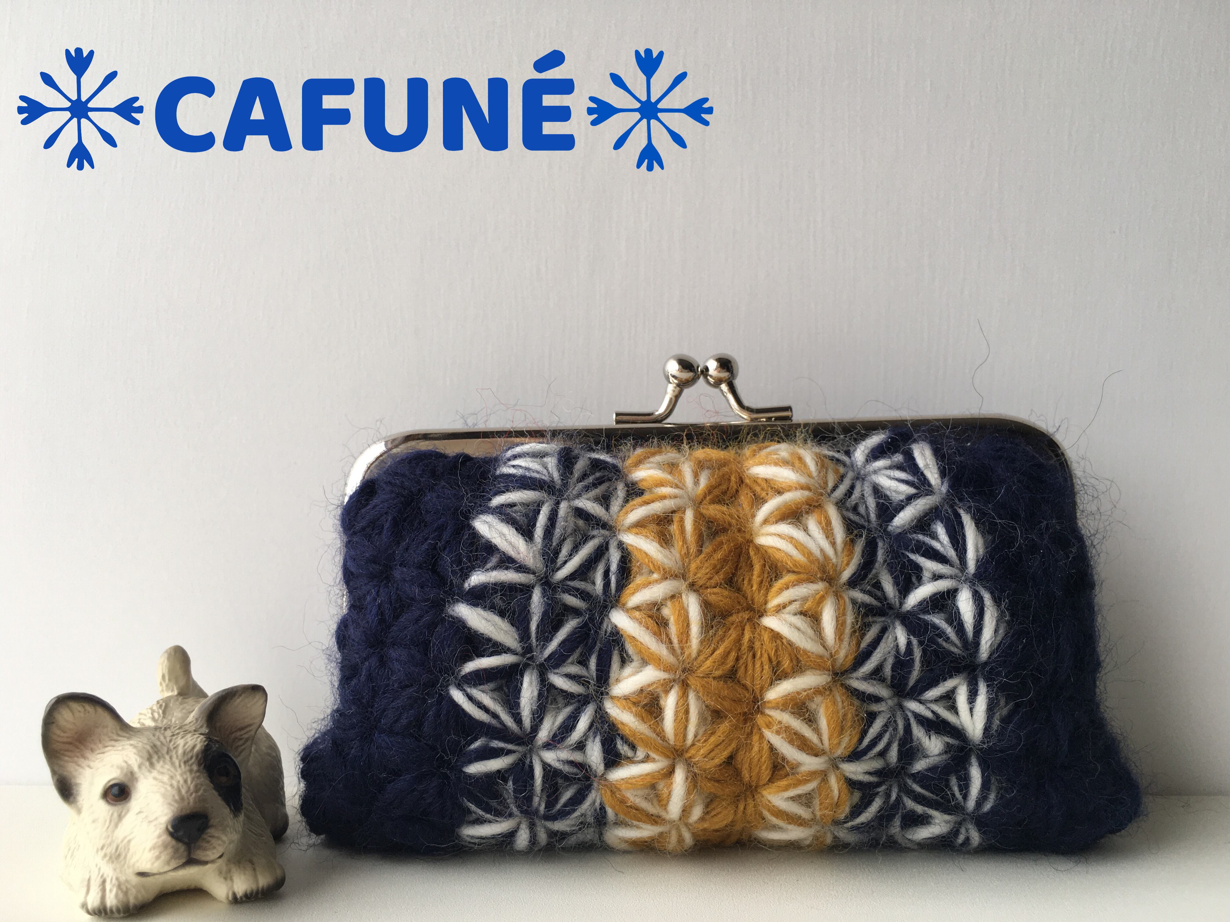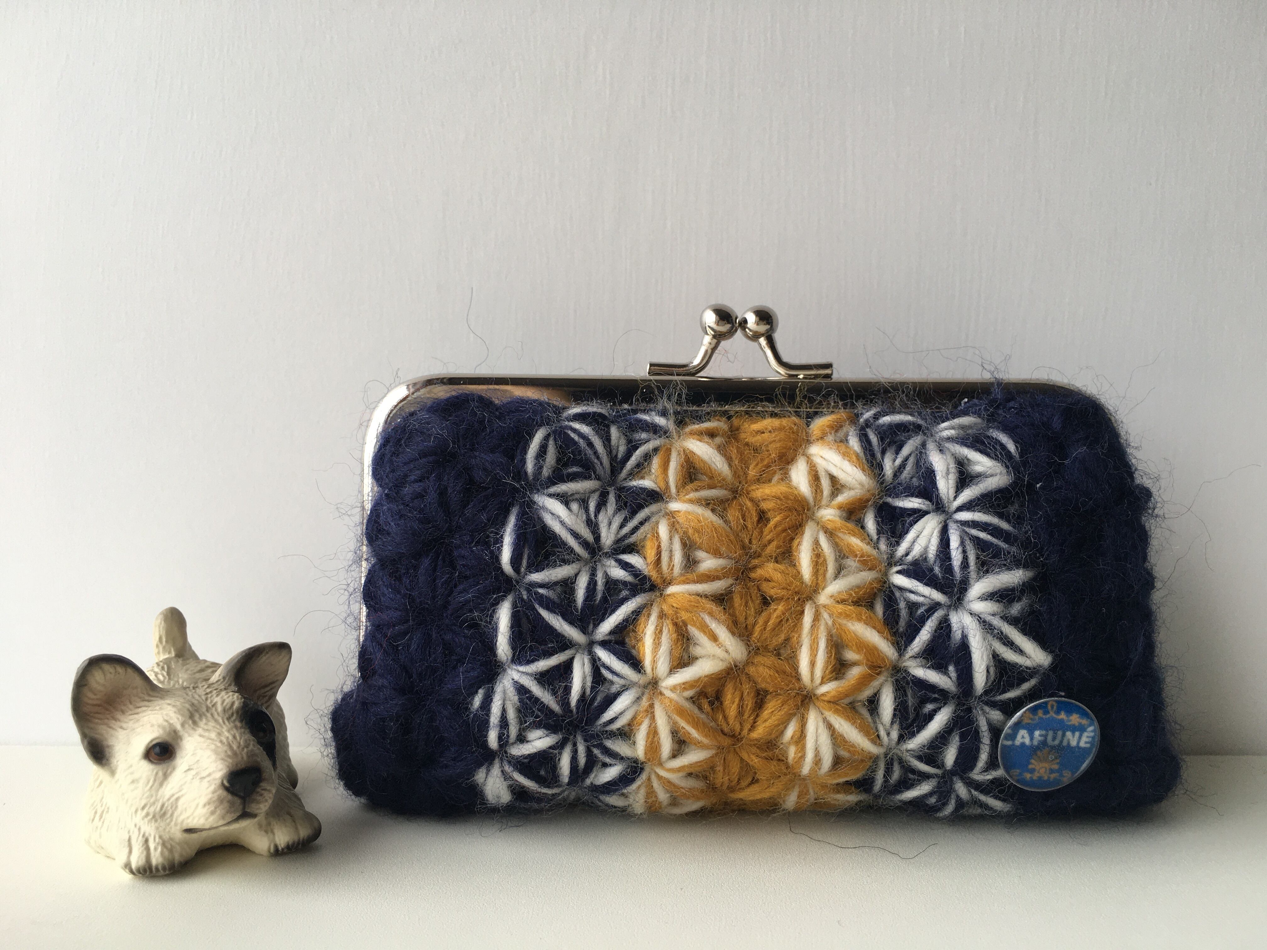 =リフ編みで編んだモダンレトロ風がま口ポーチ=