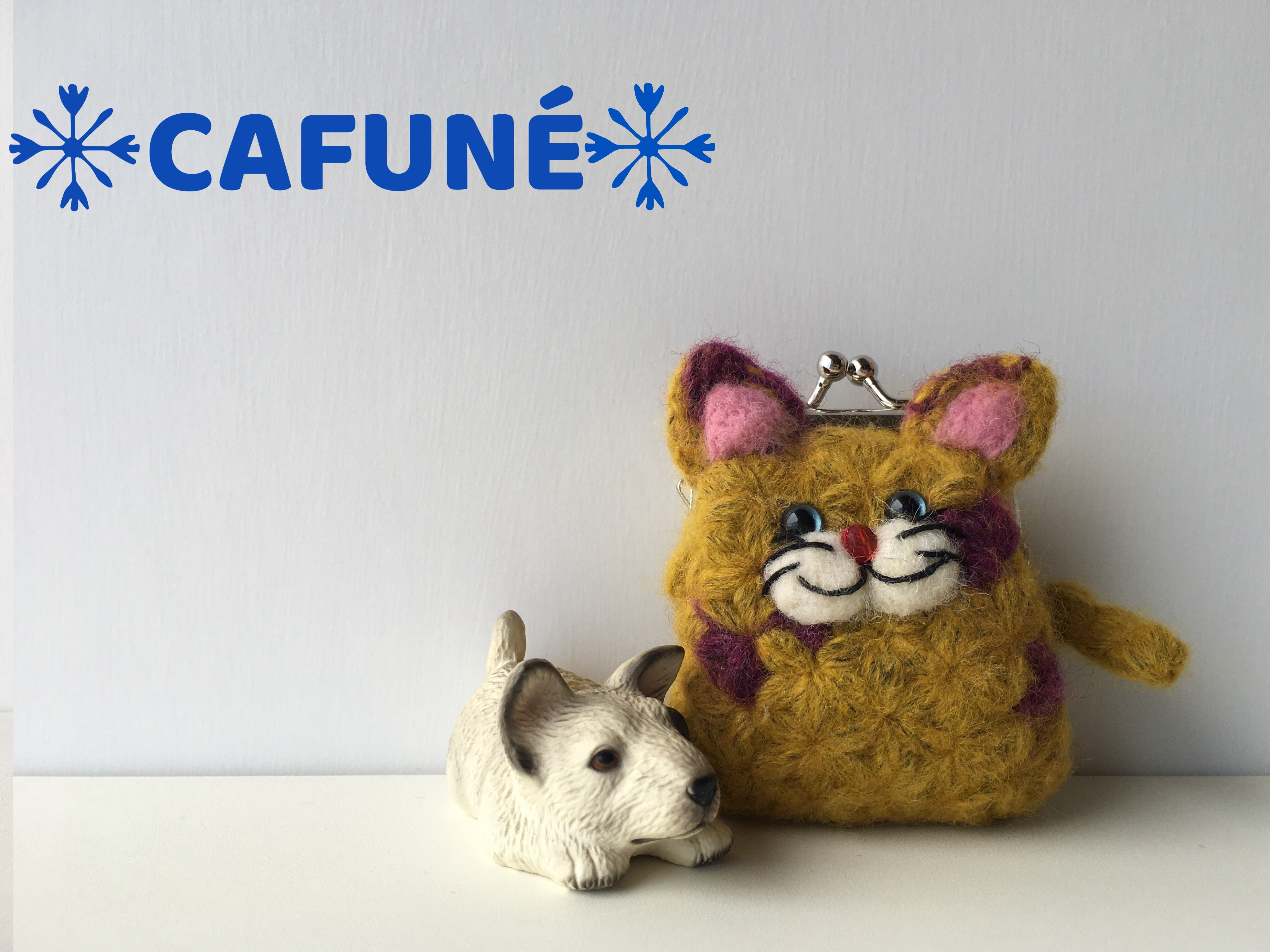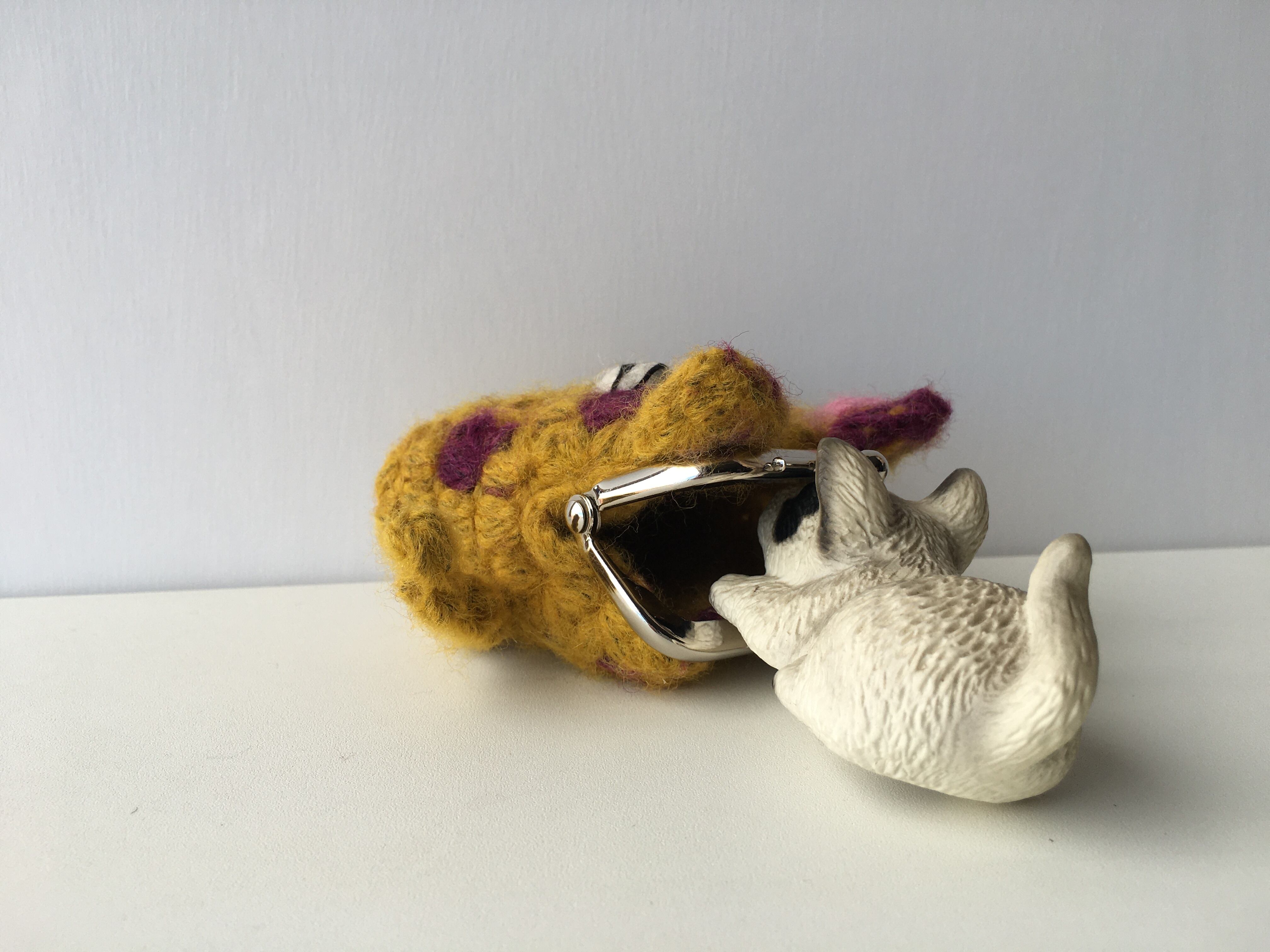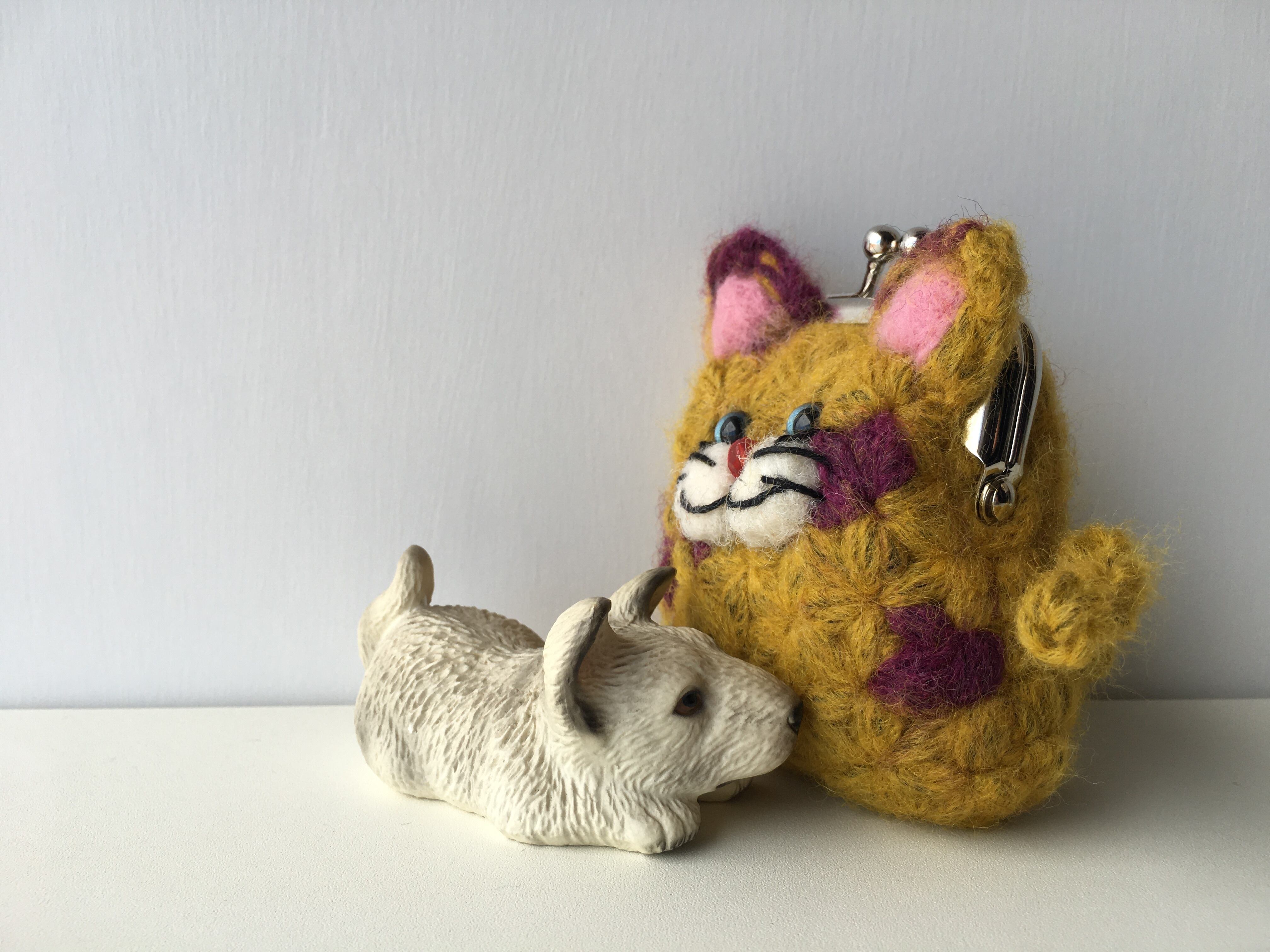 =リフ編みで編んだチビ猫ちゃんがま口コインケース=