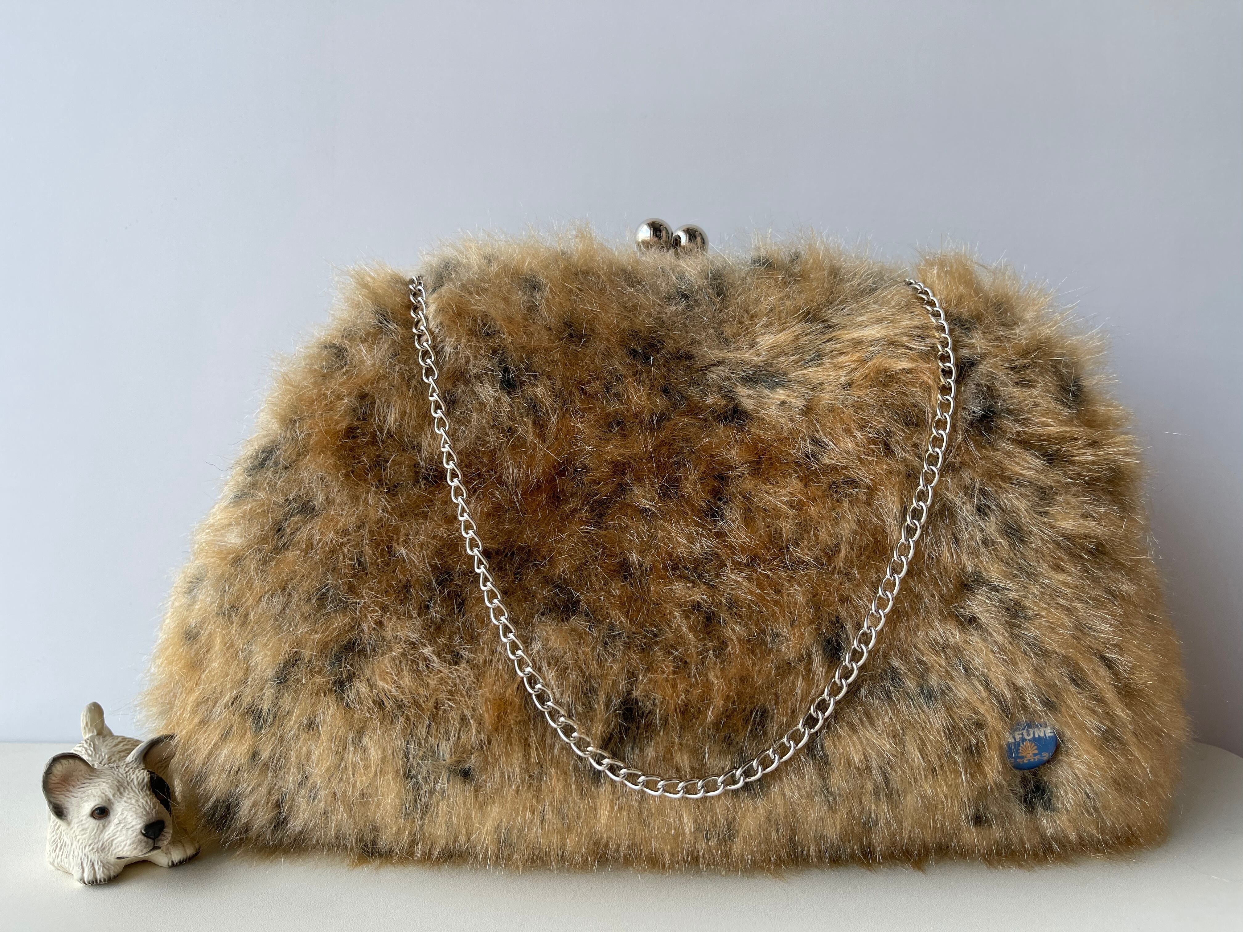 =リフ編みで編んだモフモフ猫ちゃんがま口バック=