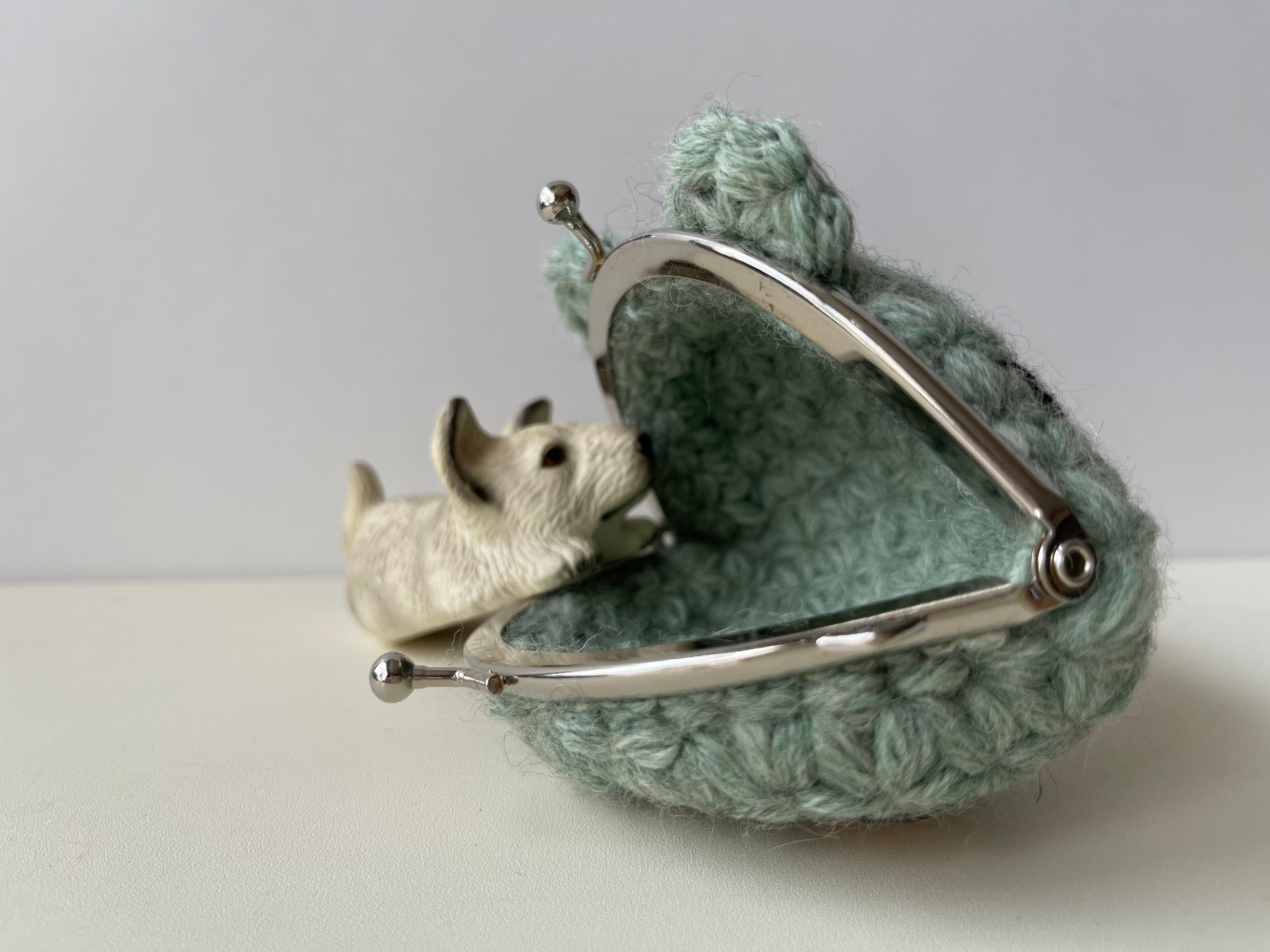 =リフ編みで編んだカエルちゃんがま口コインケース=