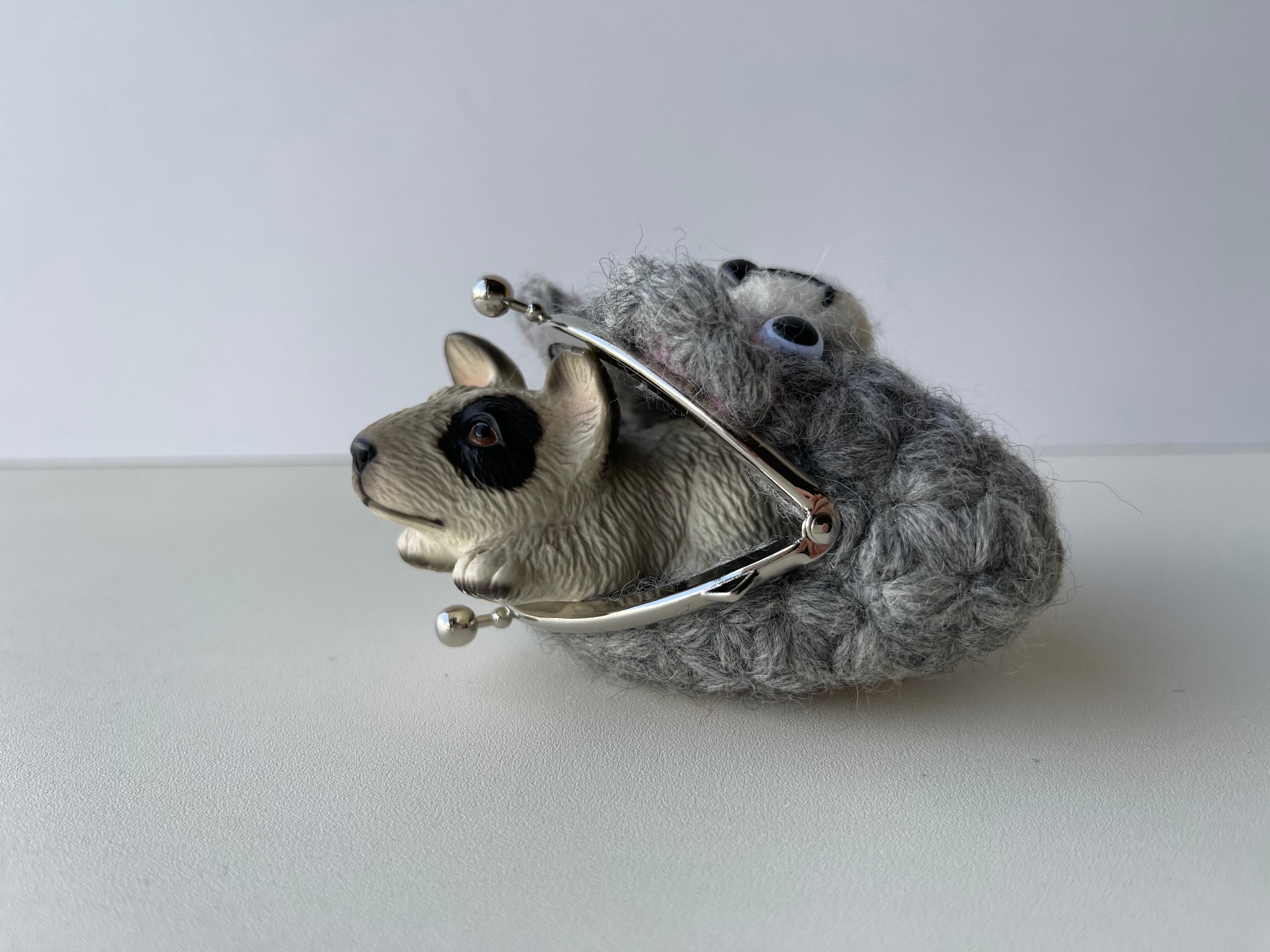 =リフ編みで編んだくまちゃんがま口コインケース=