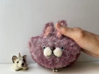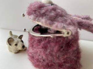 =リフ編みで編んだボックスタイプうさぎちゃんがま口=