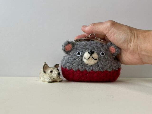=リフ編みで編んだくまちゃんがま口ポーチ=