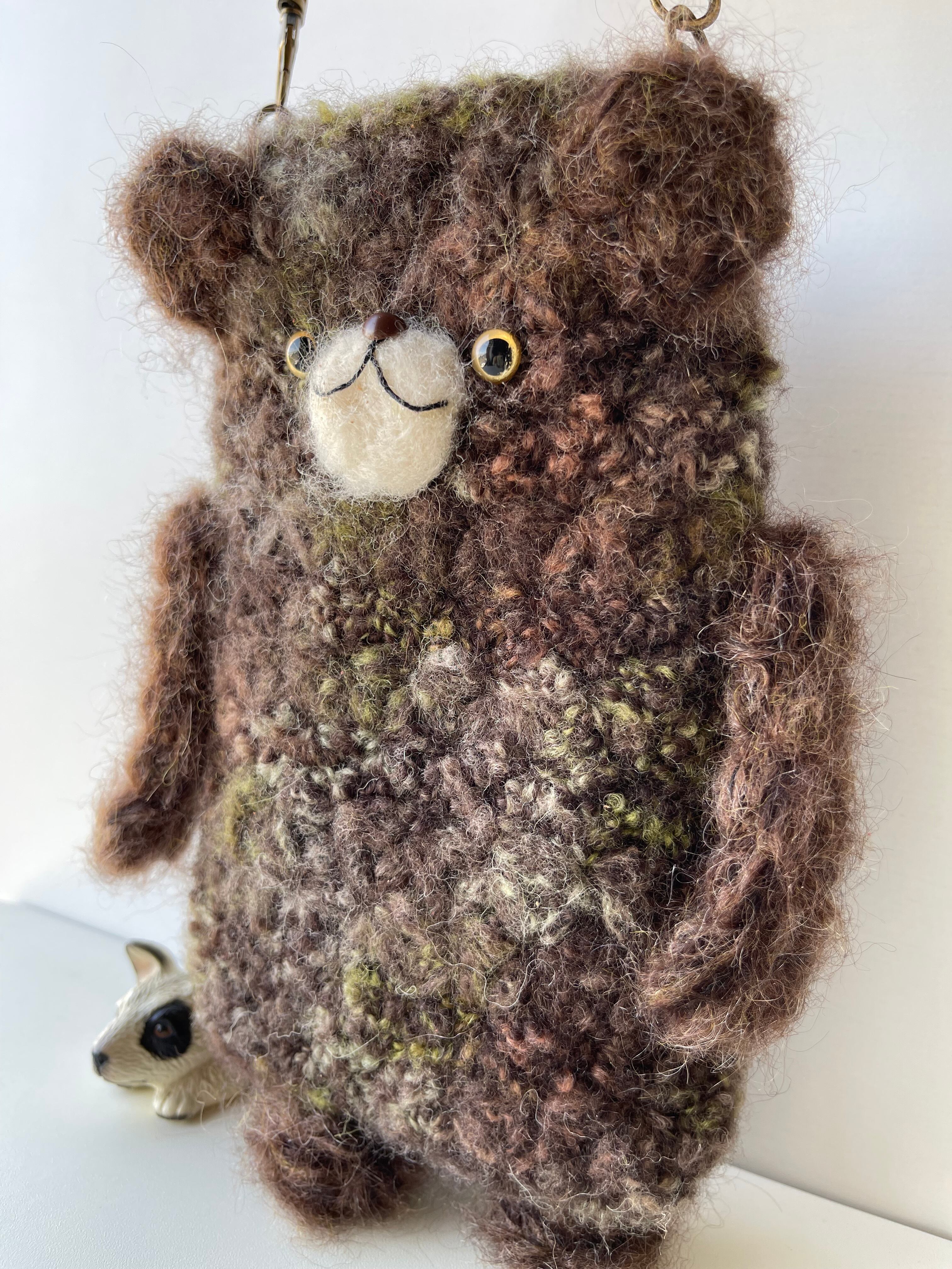 =リフ編みで編んだ金太郎さんのくまちゃん携帯ケースポーチ=