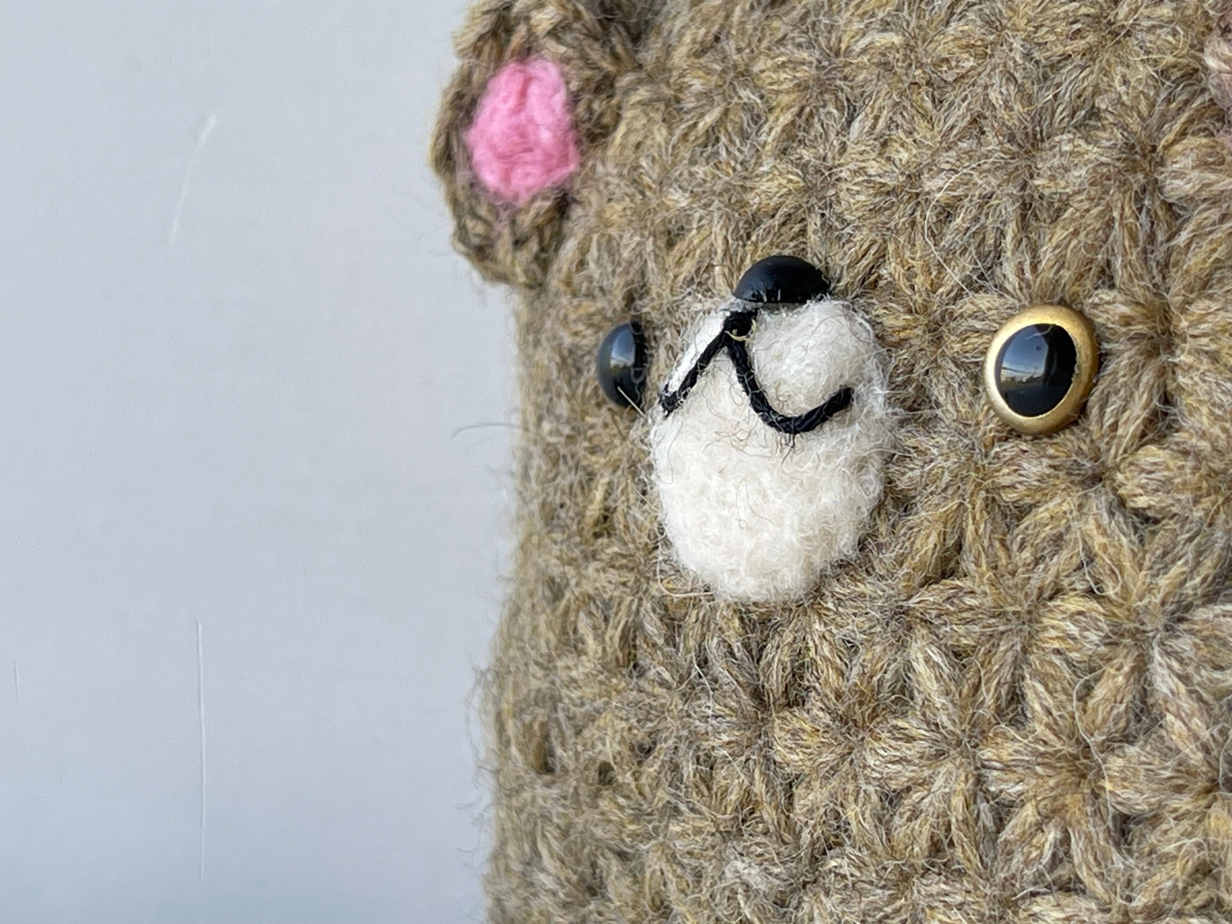 リフ編みで編んだくまちゃんに